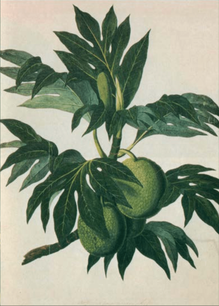 About 23 years later, Pitcairn Island would again be sighted, this time by the crew aboard the famous HMS Bounty. Lieutenant William Bligh and his crew sailed on the Bounty from England in 1787, almost ten years after the death of Carl Linnaeus, on what was chiefly a botanical expedition. They crossed the stormy seas to Tahiti for the spiky breadfruit (Artocarpus altilis) to feed slaves in the West Indies. By no coincidence, it was a fellow botanist, and founding member of the Linnean Society, Sir Joseph Banks, who came across the breadfruit on an earlier voyage to Tahiti aboard the HMS Endeavour in 1769. Carl Linnaeus was so pleased with the discoveries made by Banks; he proposed that New South Wales be named Banksia. It was this same Joseph Banks who proposed the journey to Tahiti, appointed the first six crew members that would go aboard the Bounty, and likely recommended that Lieutenant William Bligh be its captain.